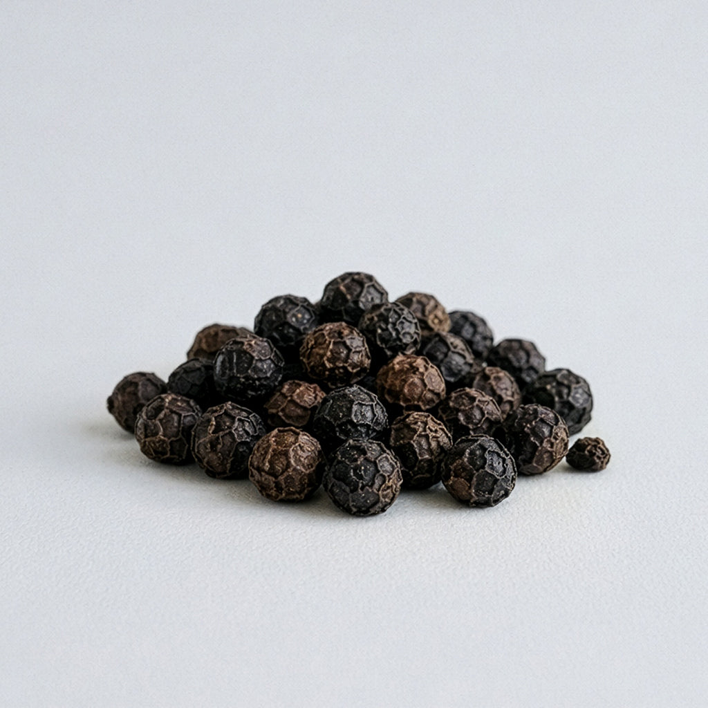 Black Pepper. Dry Warmth, Subtle Resinous Depth.
